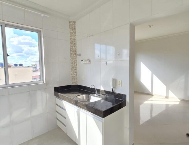 Apartamento com 02 quartos com suíte , sala ampla , cozinha com armário conjugada com área de serviço , banho social completo,01 vaga garagem