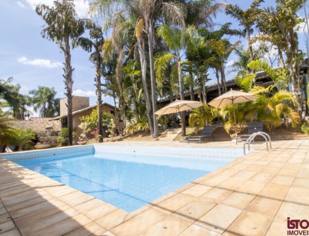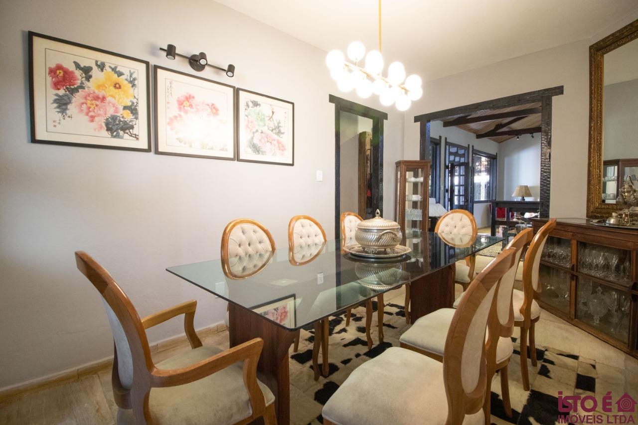 Casa com 03 quartos, sendo dois quartos com suítes completas, banheiro social, copa, cozinha com armários planejados e despensa, 01 quarto pequeno, sala ampla para dois ambientes com 01 lavabo, duas copas grandes. Possui área de lazer com dois banheiros, área coberta em telhado colonial com bancada em granito e fogão. Possui piscina, jardim, horta. Possui vagas para 03 carros.Casa toda murada com jardins em toda a volta.