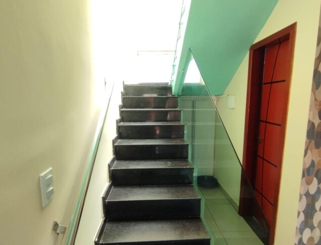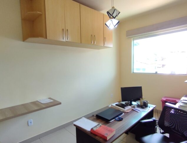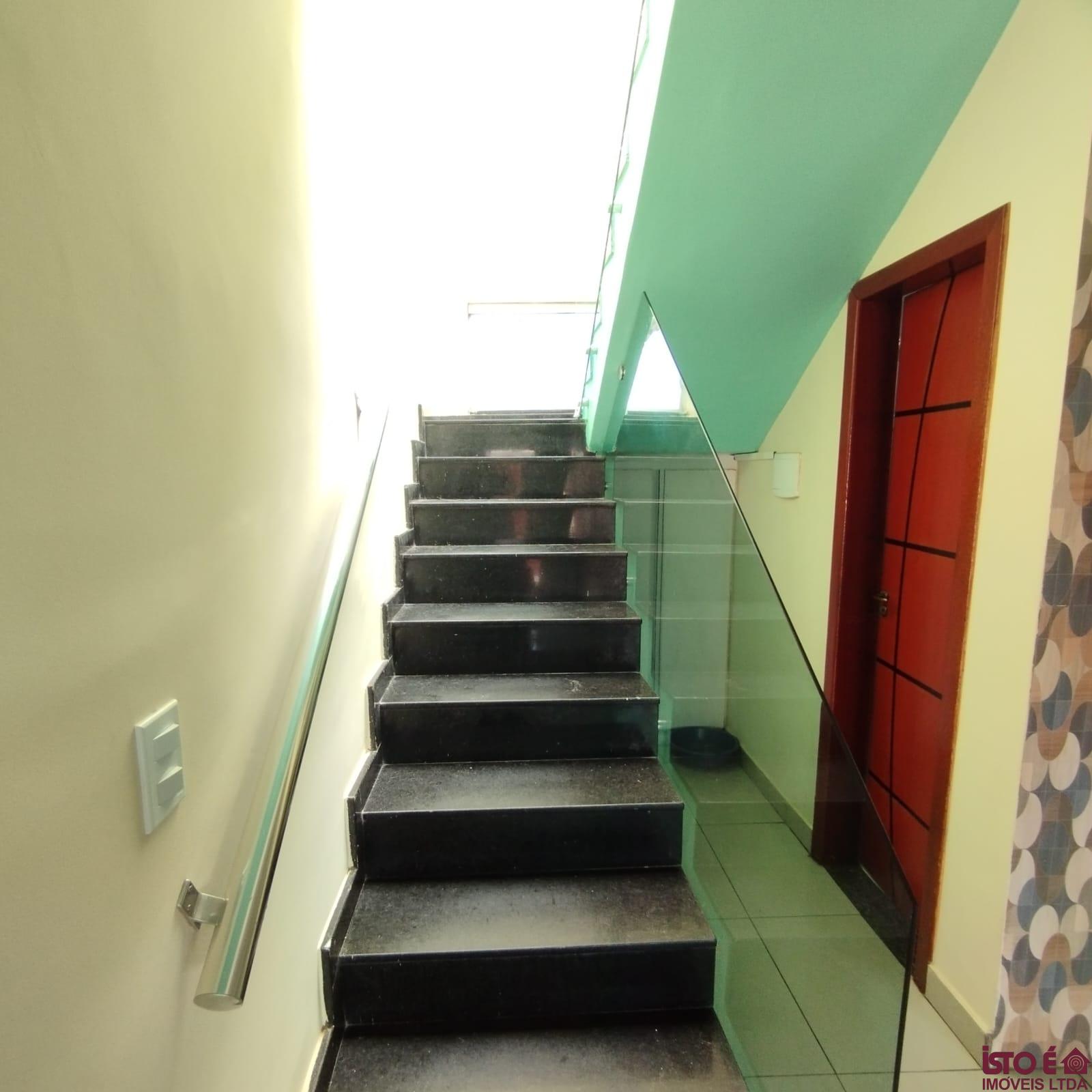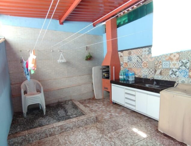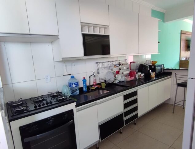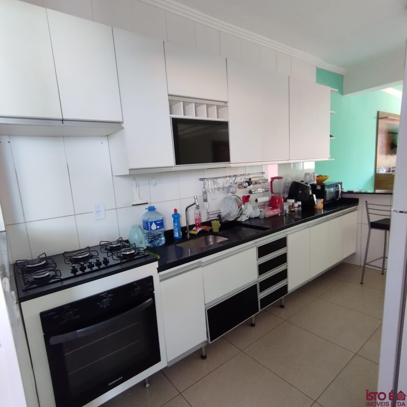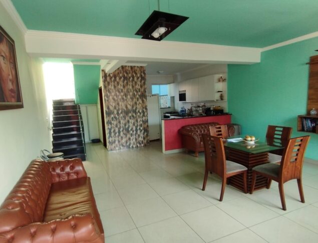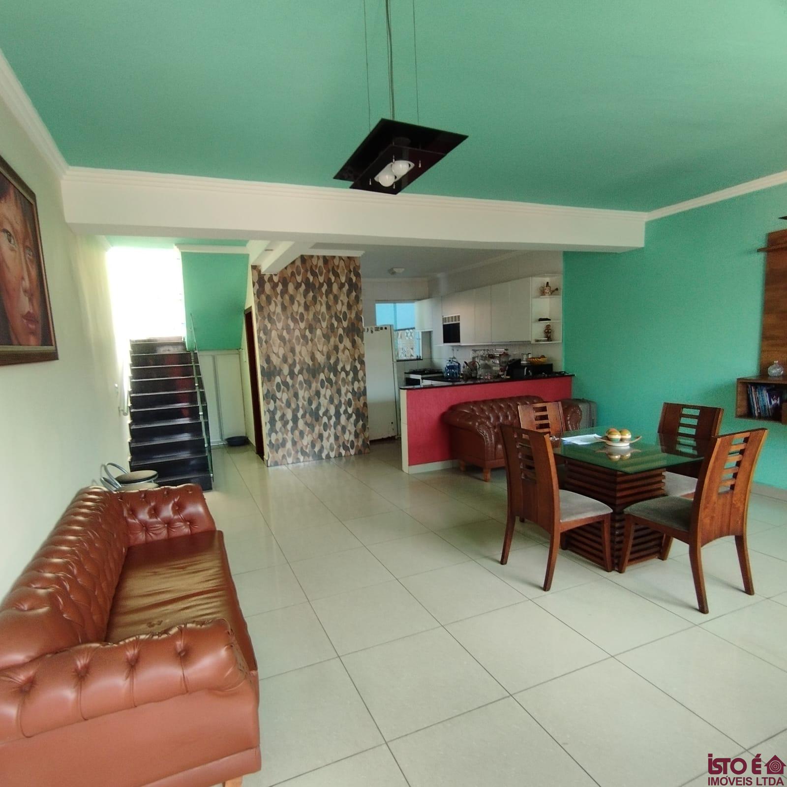 Casa geminada duplex c/ 112m² de área útil, composta por:1° Pavimento:01 Sala ampla distribuída em 02 ambientes Estar/Jantar, com ar condicionado,01 Lavabo,01 Cozinha espaçosa com pia e bancadas em granito + armários planejados,Área de serviço separada ,Área Gourmet com pia em granito, gabinete + churrasqueira,Canil,02 Vagas de garagem,2° Pavimento: 03 Quartos espaçosos 02 deles com armários planejados sendo 01 suíte com varanda,01 Banheiro social com pia em granito, gabinete, box em blindex + espelho,Área de circulação