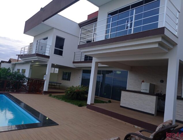 Excelente Casa construída em lote de 1.000 m2, 2 cozinha planejadas, 2 sala, 4 quartos sendo 3 com armários planejados, 1 suite,1 semi suite, 1 banheiro,1 lavabo, 1 área de serviço,Garagem 2 vaga coberta, espaço pra mais 6 carros descoberto, Ar condicionado em 3 quartos, aquecedor solar para os chuveiro e pia nas cozinhas, piscina 8×4 MT aquecida solar com chaise e espreguiçadeira, sauna 3×2,5 MT a gás, área gourmet churrasqueira com grill com acabamento em porcelanato e granito, sala de jogos, com sinuca e ping pong, filtragem de agua externa pra casa toda, Todos os tetos rebaixado, portão eletrônico, alarme e câmera